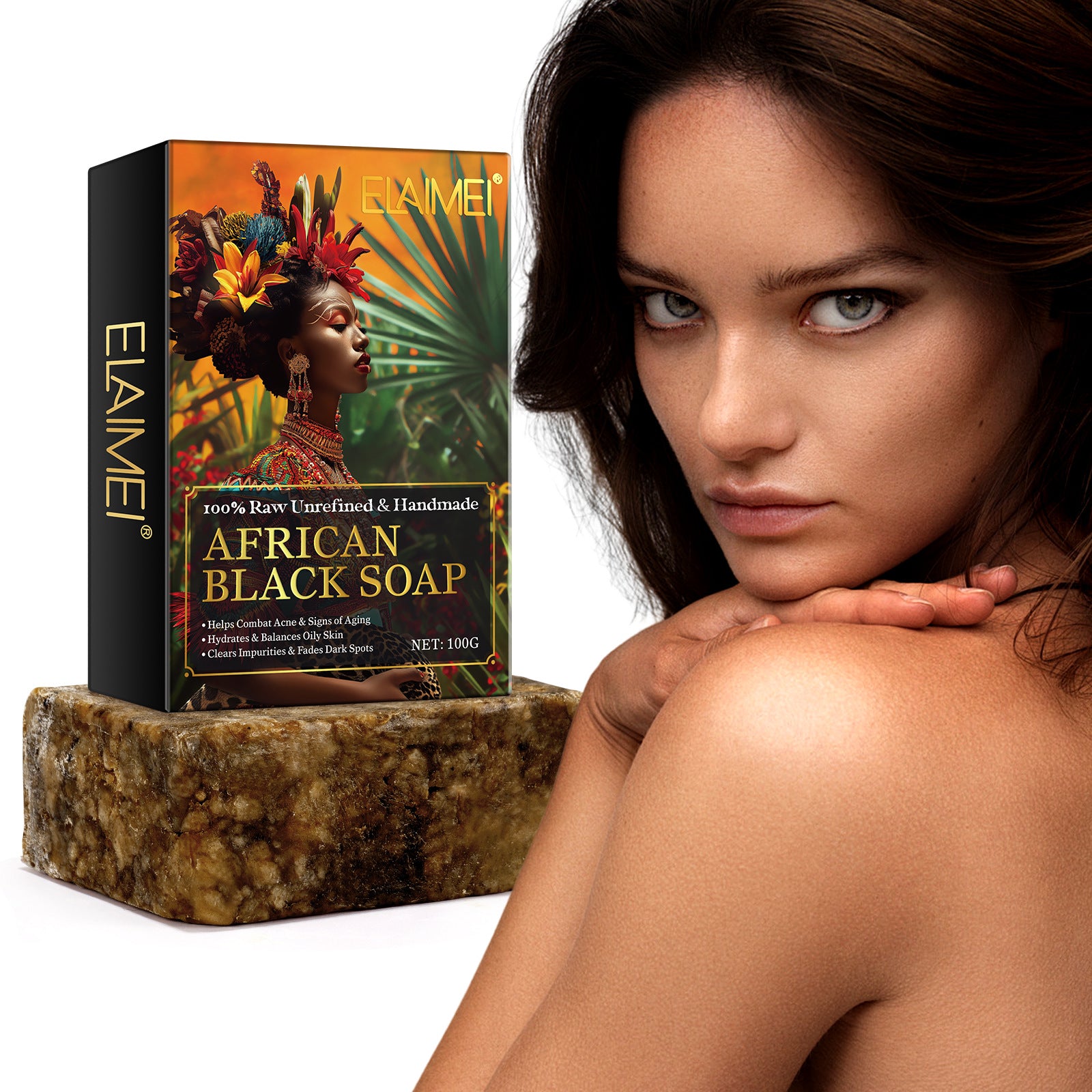African black soap is a centuries old African therapy known for its powerful antioxidant properties, with dual effects of cleansing and nourishing the skin. African black soap bar is rich in vitamins A, D, E, and K, it can promote the production of collagen, moisturize and balance oily skin, while naturally combating acne and signs of aging, leaving your skin looking healthy and radiant.